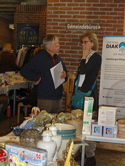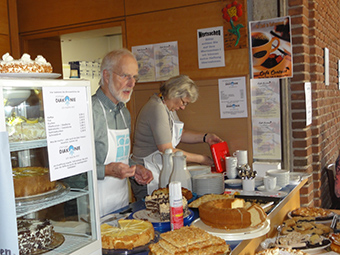 „Auf dem diesjährigen Seniorenflohmarkt im Ökumenischen Zentrum St. Stephanus durfte unsere Stiftung wieder das Café betreiben. Das reichhaltige Kuchenbufett hat viele Menschen angelockt, so dass unsere Küchenmannschaft alle Hände voll zu tun hatte. Ein besonderes zusätzliches Angebot war unser Stifterbrot, von dem wir 30 Stück verkauft haben. Am Ende haben wir uns über den kräftigen Erlös von rund 650,00 € gefreut!“